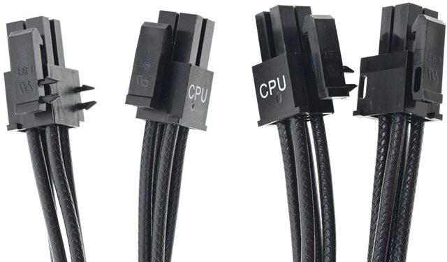 ▼2條處理器電源黑色模組化線路,提供2個EPS 4+4P接頭,線路長度70公分