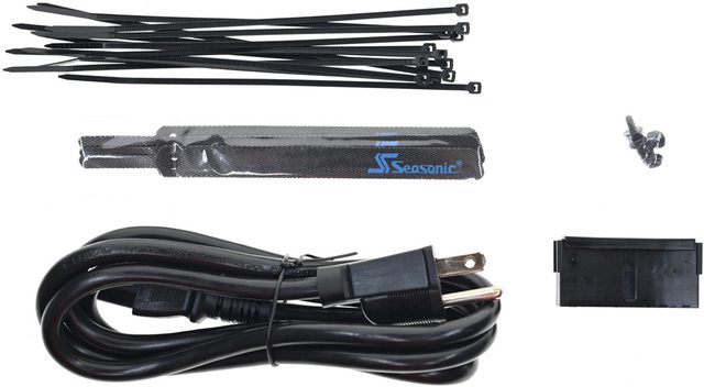 ▼包裝內容,模組化線組及電源本體分別裝在印有商標的黑色不織布束口袋內