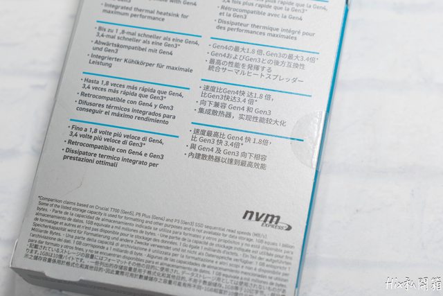 背面以多國語言標明著GEN4的1.8倍、GEN3的3.4倍速度