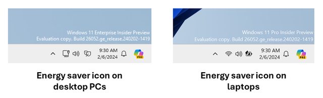 桌電和筆電會有各自不同的能源節省模式圖示
