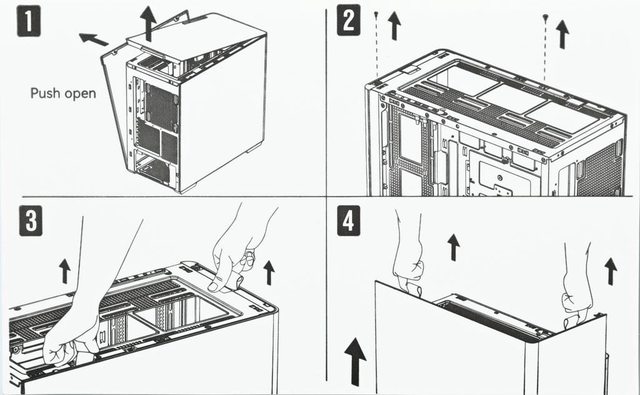 ▼頂部配置金屬網孔板,自後方把手處施力往上拉即可開啟。長條形固定孔可裝3個120mm