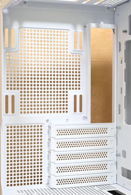 ▼後方大面積網狀通風口右上方可裝1個120mm/140mm風扇,水冷排可裝120mm/140mm。左