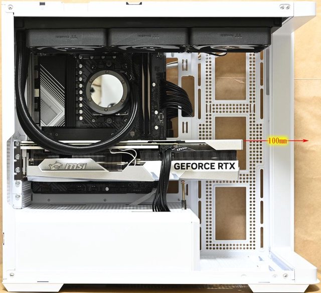 ▼安裝MSI GEFORCE RTX 4070 Ti GAMING X TRIO WHITE(337×140×62mm)時,顯示卡頂
