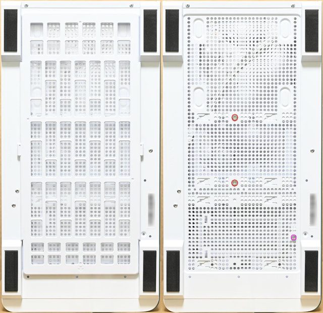 ▼機殼底部腳座有防滑墊,底部網狀通風口配置磁吸式過濾網,紅框是電源艙底部3.5吋