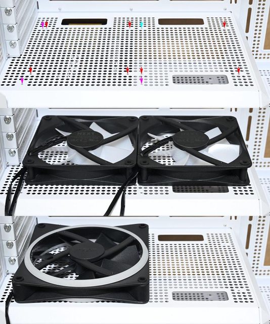色箭頭鎖點)或1個140mm(紫色/水藍色箭頭鎖點)風扇