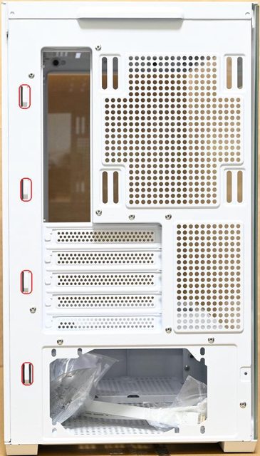 側有4個線路固定支架(紅框),下方電源供應器安裝位置提供2種安裝方向螺絲孔