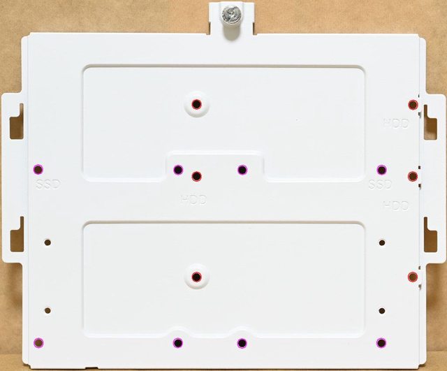 ○主機板底板後方3.5吋/2.5吋固定板可裝2個2.5吋裝置或是1個3.5吋裝置加1個2.5吋裝
