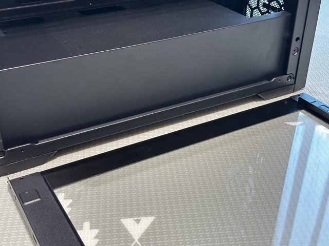 側板玻璃左右側設有固定用的金屬機構,但下方沒有設置防傾倒的固定卡槽,拆裝時需多