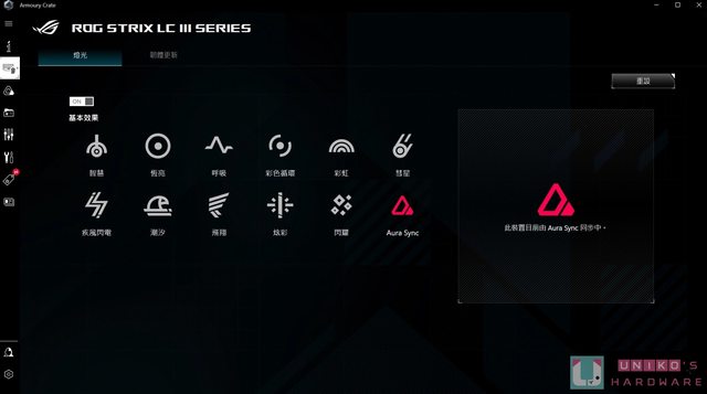 快速看看 ROG 看家軟體 Armoury Crate 提供的客製化選項,ROG Strix LC III 360 ARGB