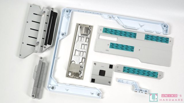 由於主機板幾乎所有接頭都被移到背面,正面露出的針腳位置便採用白色塑膠裝甲遮住裝飾