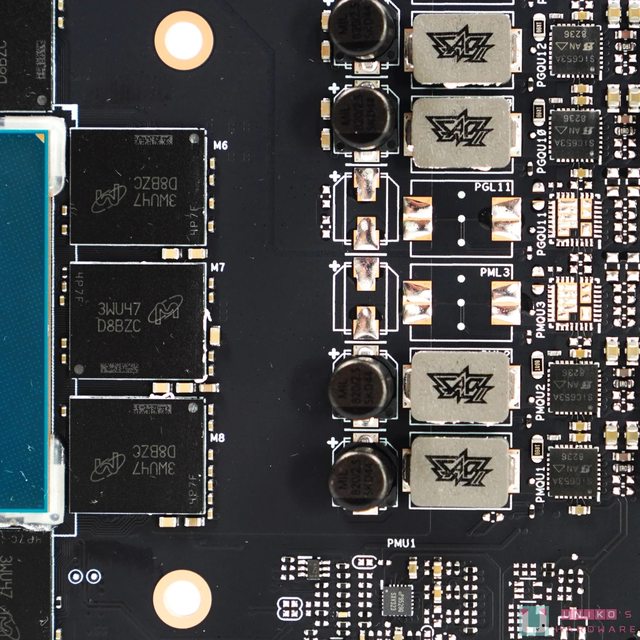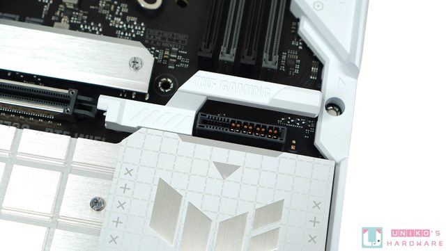 巨大的延伸式 VRM 散熱器設計看起來與 TUF PRO 的版本一模一樣,只是改用銀色做為主視