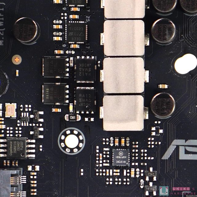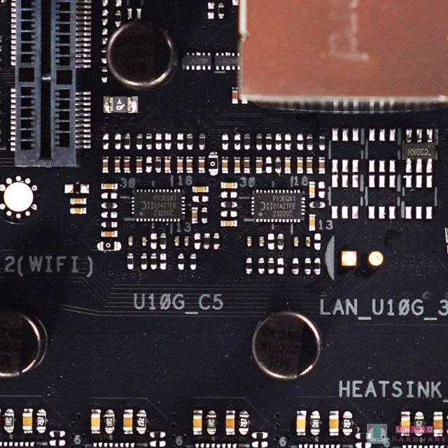 散熱設計可算是華碩首次引入巨大的散熱片 (橫跨晶片組上方) 來壓制 3 根 M.2,以往華