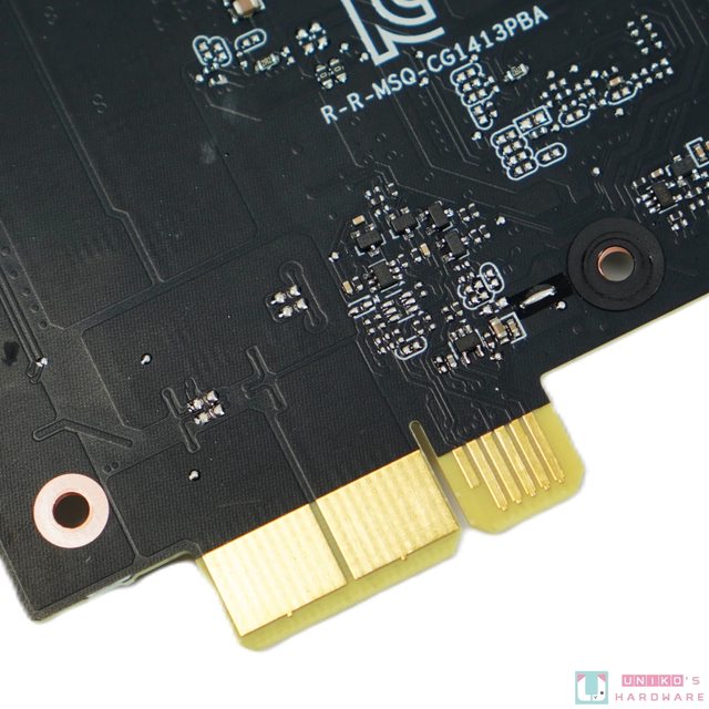 NCED BTF 顯示卡,主機板 PCB 背面才是拔插線材的地方。
