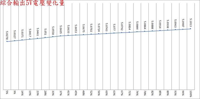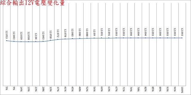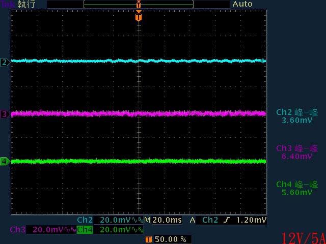 ,輸出12V/5A時有最小12V漣波。於綜合全負載輸出下12V/5V/3.3V各路低頻漣波分別為