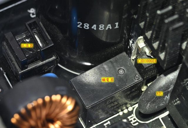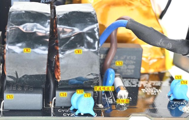 ,只控制內部電路信號。磁芯及風扇模式開關焊點有包覆套管,交流輸入插座及總開關焊