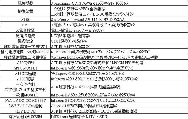 Apexgaming ODIN ATX 3.0 1650W特色: