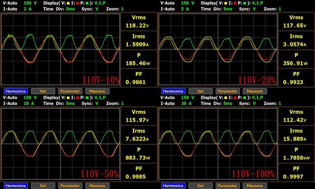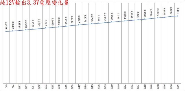 ○110V輸入的偏載測試,12V維持空載,測試3.3V滿載、5V滿載、3.3V/5V滿載的