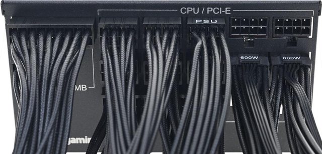 ▼將所有模組化線路插上的樣子,會多出2個CPU/PCI-E 8P插座及1個Peripheral 6P插座
