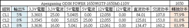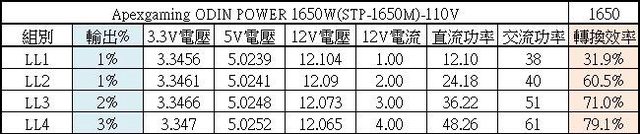 ○110V輸入時熱機下3.3V過電流截止點38A(152%),5V過電流截止點46A(184%)