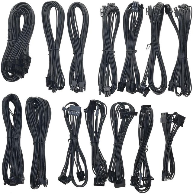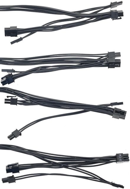 ▼4條顯示卡電源黑色模組化線路,提供8個PCIE 6+2P接頭,至第一個接頭線路長度75公