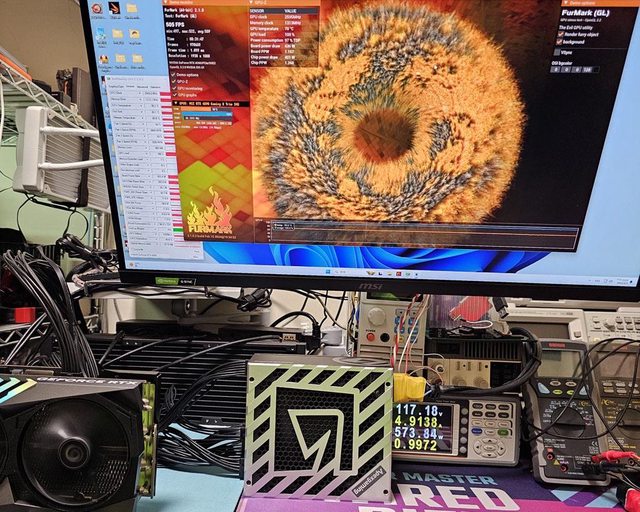▼用隨附的12VHPWR模組化線材連接MSI GEFORCE RTX 4090 GAMING X TRIO進行測試