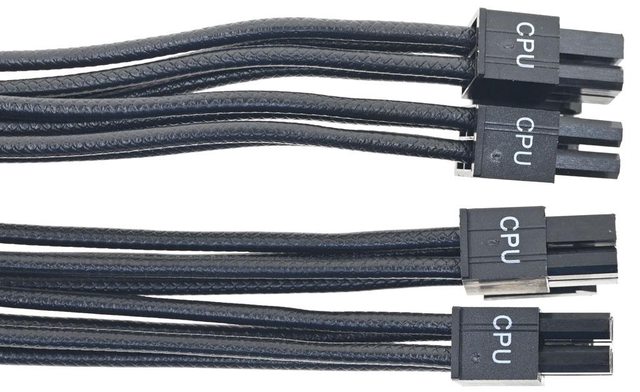 ▼2條處理器電源黑色模組化線路,提供2個EPS 4+4P接頭,線路長度75公分