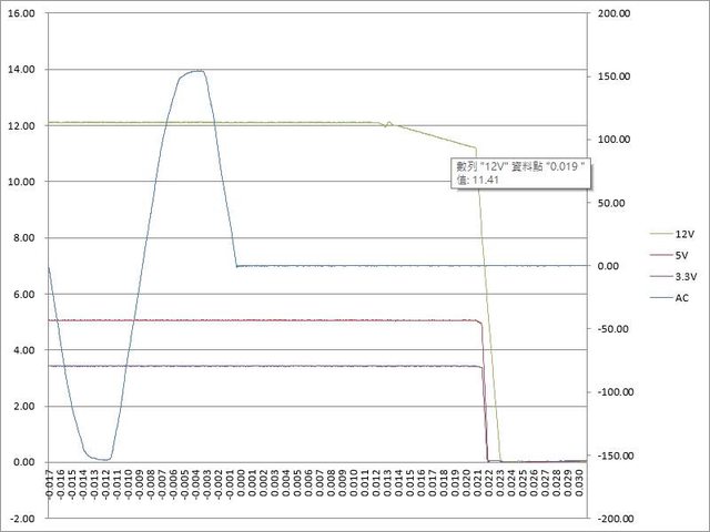 13ms開始出現壓降,於19ms降至11.41V