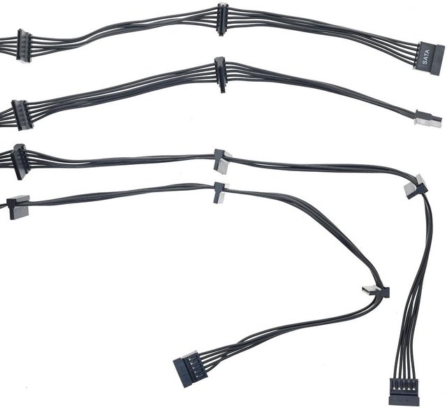 ▼4條SATA黑色模組化線路,提供10個直角SATA接頭及4個直式SATA接頭,2條提供三接頭