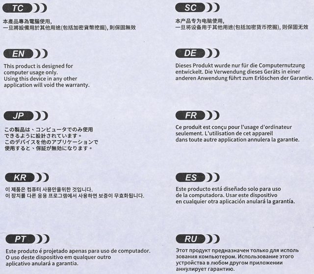 ▼本產品專為電腦使用,一旦將設備用於其他用途(包括加密貨幣挖掘),則保固無效多國