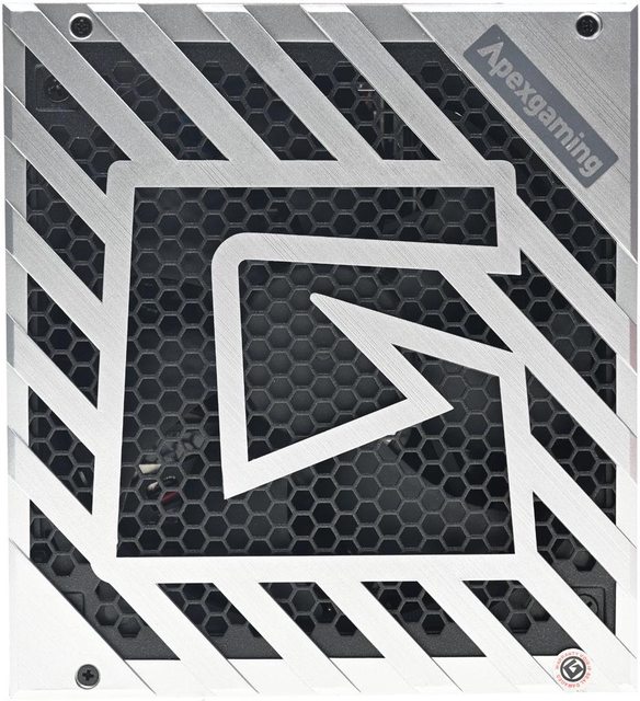 ▼直接在外殼上沖壓風扇護網,外側的銀色塑膠造型飾蓋右上方有Apexgaming商標