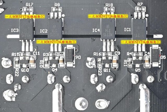 ○主電路板背面焊點做工良好,於大電流線路敷錫,並在部分二次側區域加裝小塊長方形