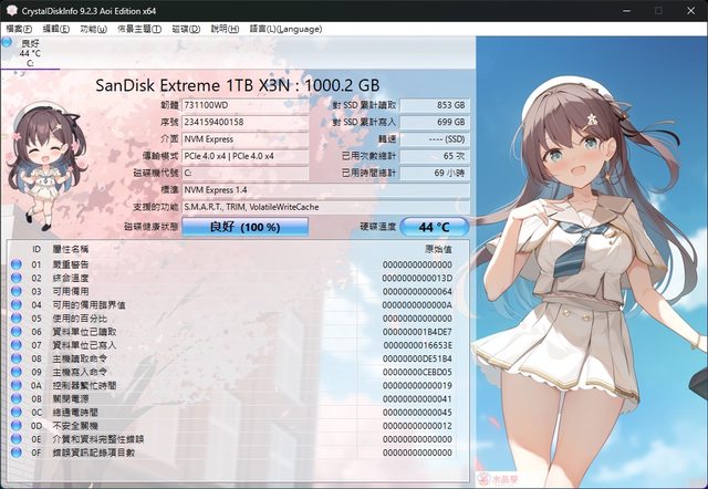 效能測試 測試平臺 處理器:AMD Ryzen 9 7950X3D 主機板:ASUS ROG STRIX X670E-I GAMING 記憶體:Kingston FURY Renegade RGB DDR5-6400 CL32 儲存:SanDisk Extreme M.2 1TB (系統 M2_1) 電源:Cooler Master V 1100 SFX PLATINUM 散熱器:Thermalright AXP120-X67 機殼:Fractal Design Ridge 系統:Window 11 23H2 專業版 CrystalDiskInfo https://i.imgur.com/6FdSVwd.jpg