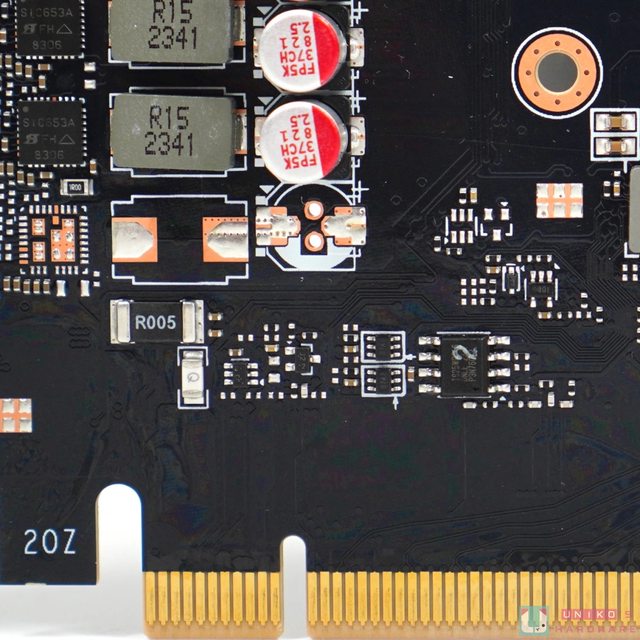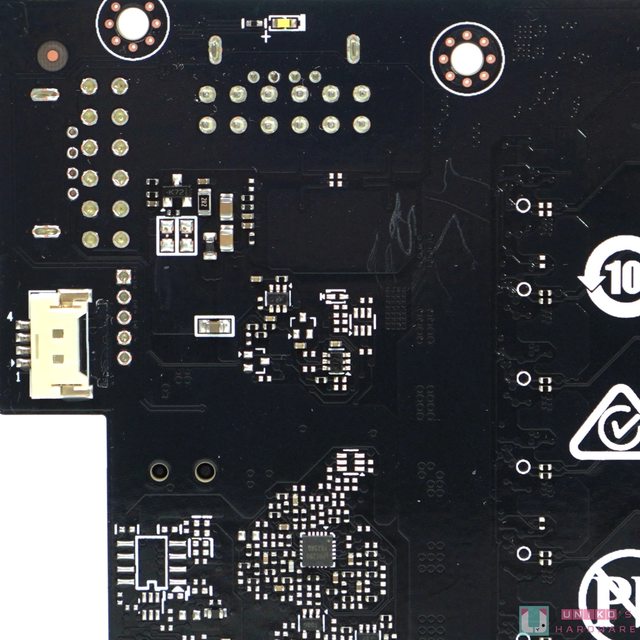 ‧顯示卡的底部留有巨大的排熱空間,內部的線材接頭也集中在此,這對於拆卡來說非常友