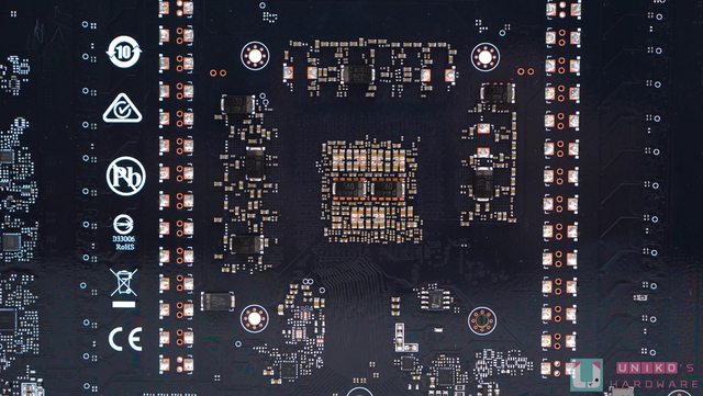 ‧大塊的均熱板覆蓋記憶體和核心晶體,另使用了多達 12 根熱導管把均熱板的熱力迅速帶