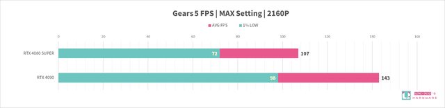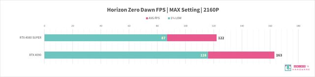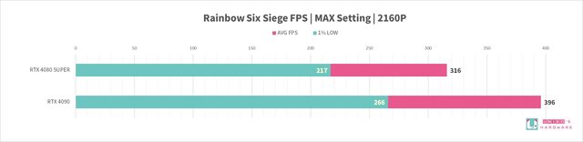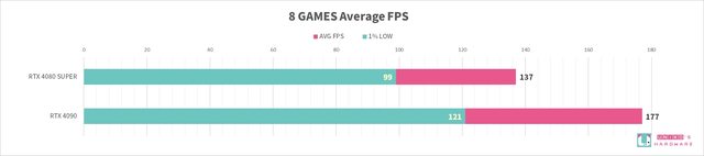 RTX 4080 SUPER 和 RTX 4090,8 組遊戲的 FPS 差異分別是:
