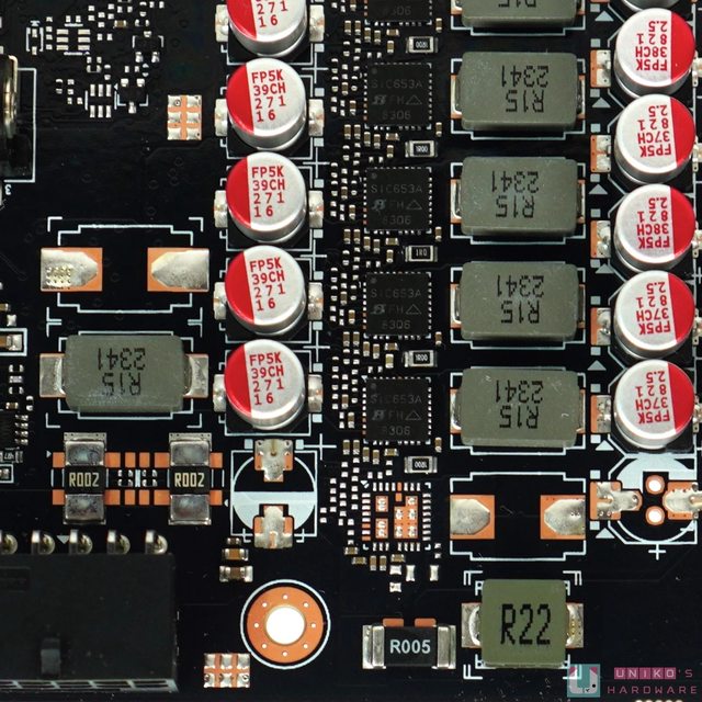 ‧供電模組、供電電感、輸入電容、輸出電容等等,甚至是 16-PIN 的輸入電感,技嘉都沒