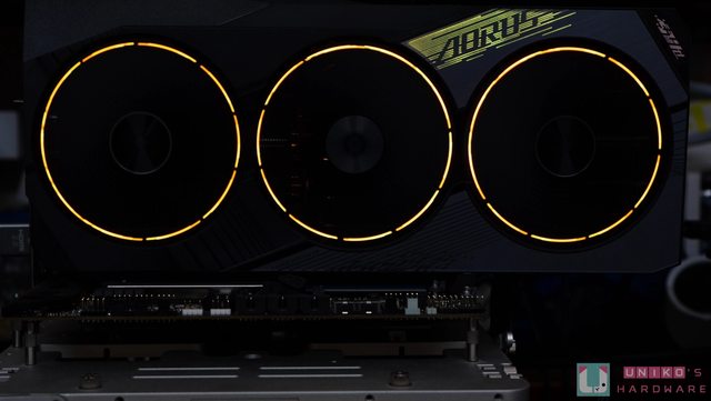 ‧扇葉的發光設計繼續沿用自家在 RTX 20 時帶起風潮的三環燈設計,利用一顆 LED 燈發