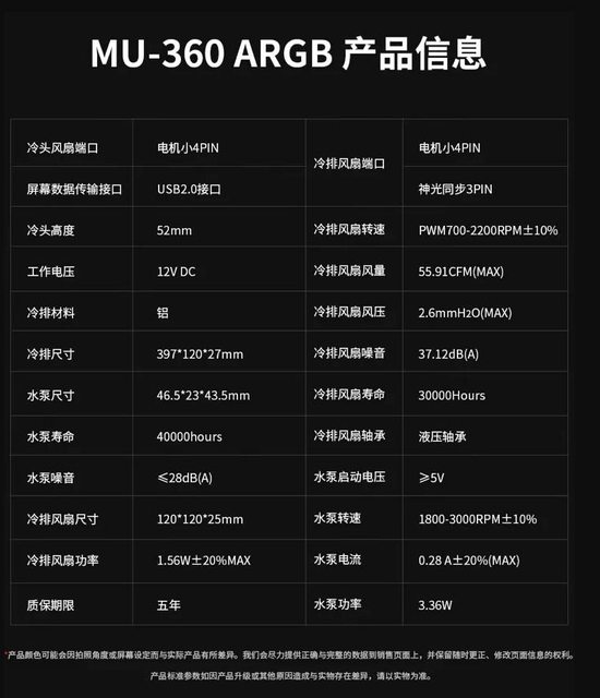 此次新品山海MU-360 ARGB,黑白兩個顏色任君選擇