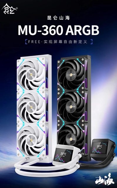鑫穀近日在京東上架了新款昆侖山海 MU-360 ARGB 一體式水冷散熱器