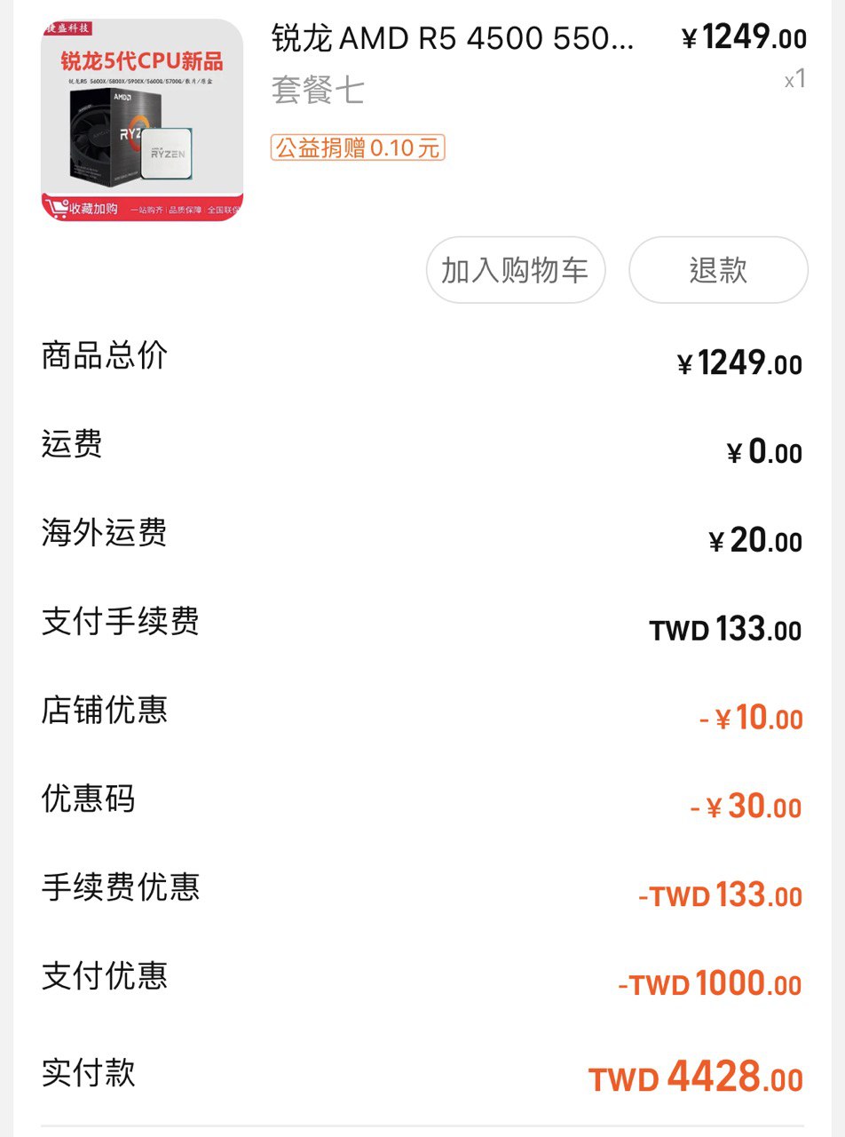 中國京東購物車三射手 京東自營AMD R5 5600G 約台幣3672元 R7 5700G 約台幣5090元 免跨國28人民幣運費 對比台灣5500GT 5600GT仍在4500~4900元價位 適合想省一點是一點的使用者 拿來組純影音機還蠻好用的 畢竟入門i5大概還要5000塊起 -- ※ 發信站: 批踢踢實業坊(ptt-club.com.tw), 來自: 1.164.239.100 (臺灣) ※ 文章網址: https://ptt-club.com.tw/PC_Shopping/M.1711590223.A.21F