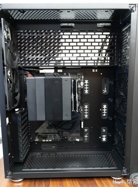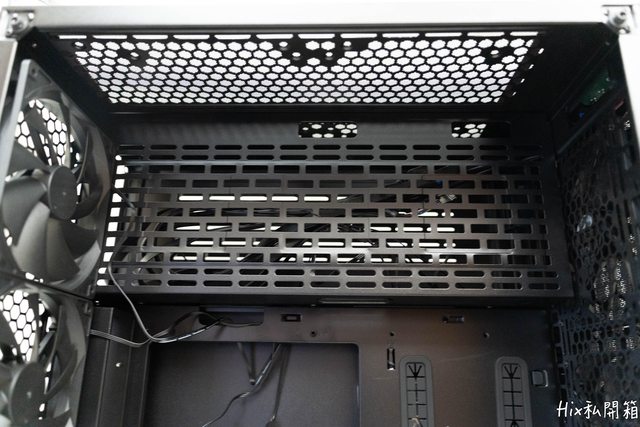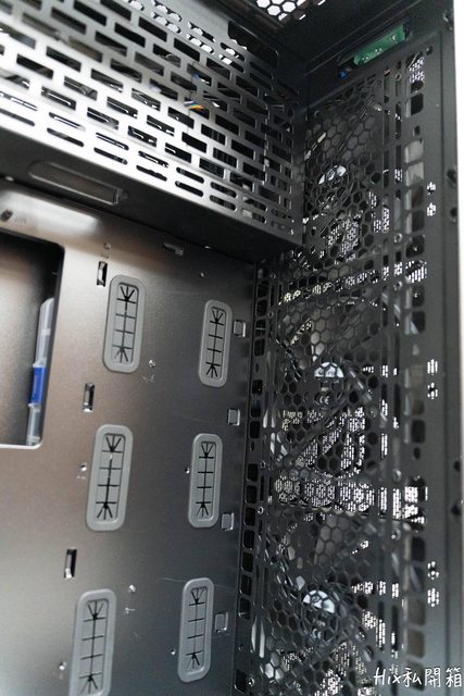 外加可看到電供位的鎖點以及內附的雙120mm風扇