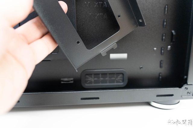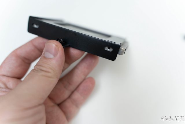 拿2.5吋的硬碟槽作示範,各處鎖點幾乎都有開口,可以自行決定要鎖哪邊的螺絲