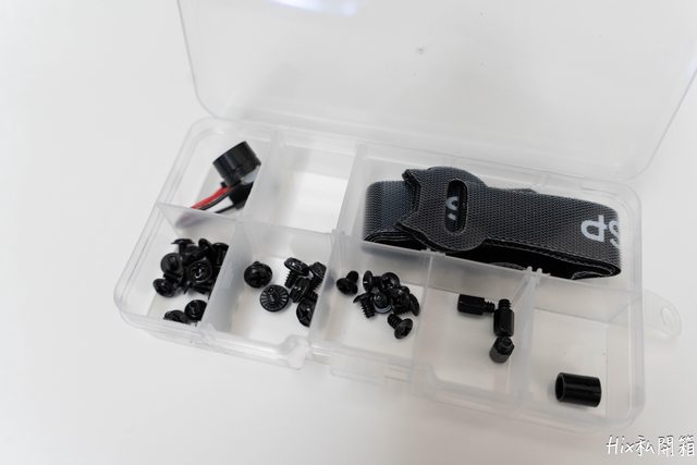 配件盒內附有一個蜂鳴器及束帶,還有一堆一定用得到的螺絲們