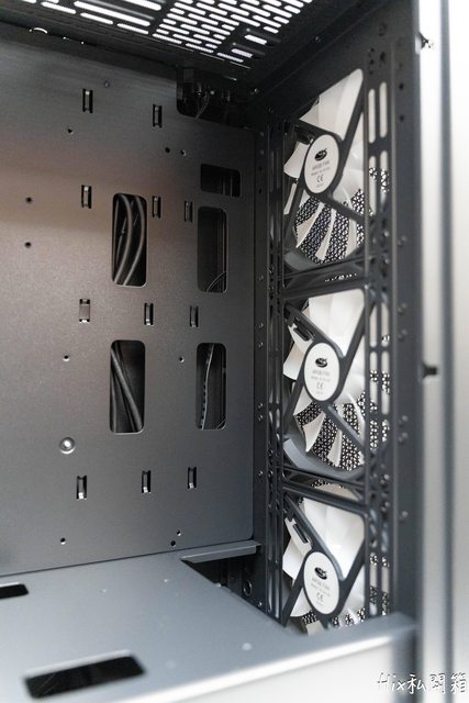 前方風扇位有特地作個內縮供給水冷排置放,冷排甚至可以放到50mm的厚排