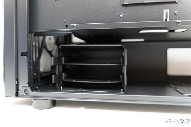 電供位的防塵網非磁吸式的,而也可以看到3.5吋硬碟籠在這有作滑軌設計