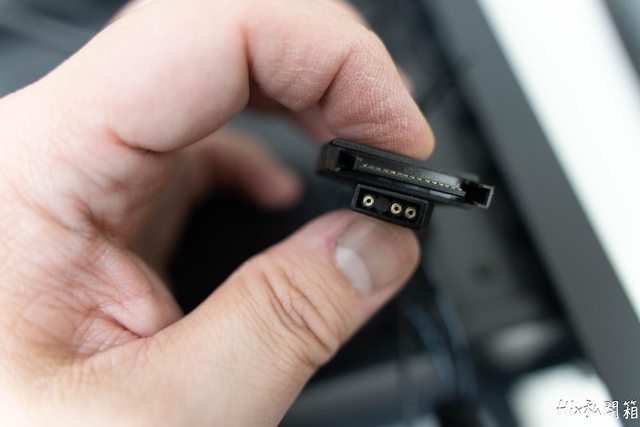 內建風扇是以SATA作供電(固定轉速),外帶一個ARGB接頭可以與主板聯動控制燈效