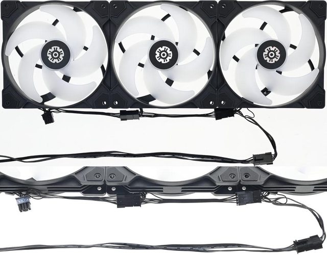 風壓最佳化高性能PWM發光風扇,線路採用方便串接設計,水冷頭VRM風扇及水冷排風扇燈