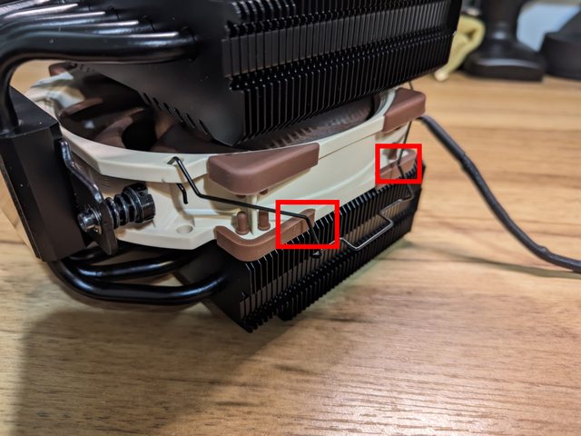 需要旋轉90度才能正常裝入,鐵絲能夠扣上並且散熱器螺絲也不會與扇框衝突