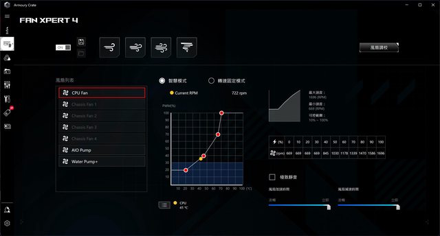 風扇的RPM從華碩AC軟體讀取約為700-1700 RPM