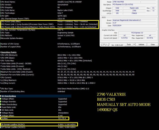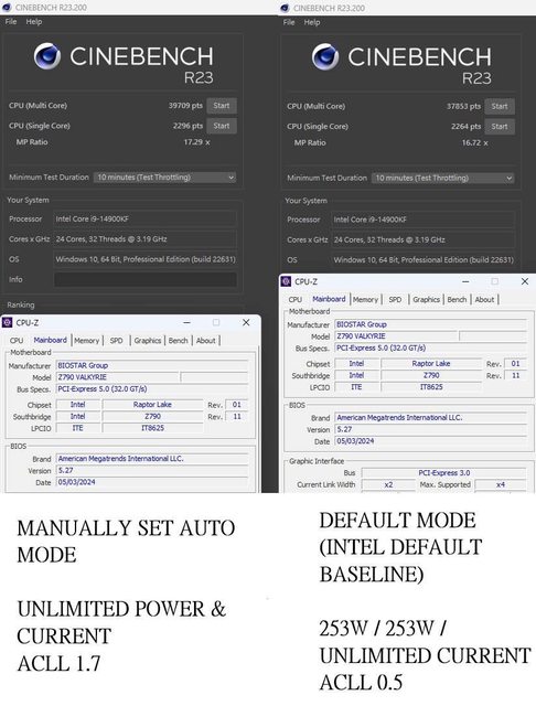 14900K / 14900KF 在無功率和電流限制時,加上板廠會降低預設的 AC_LL (<1.1),14900K